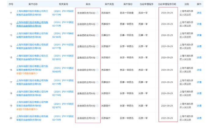 Among private banks, on September 29 alone, Shanghai Huarui Bank had 49 financial loan contract dispute cases simultaneously heard in court. As of October 8 this year, Shanghai Huarui Bank had a total of 2752 cases involving the plaintiff, far exceeding the total for the entire previous year.