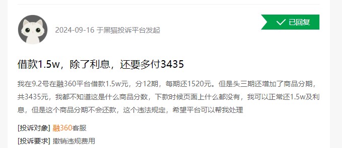 Thirdly, various fees are charged under various pretexts. Some users complained that borrowing 15,000 yuan from Rong 360 resulted in a monthly repayment of 1520 yuan, but without their knowledge, the first three installments accumulated a total of 3435 yuan in installment fees.