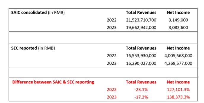 The net profit declared by the company to the State Administration for Industry and Commerce in 2023 was 3.08 million yuan, while the net profit disclosed in the financial report was 4.3 billion yuan, a difference of 1384 times. Even with different accounting treatments, such a large profit difference cannot be concealed.
