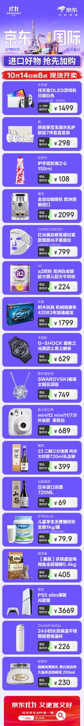 On the evening of October 14th, JD.com's 11.11 spot sale will start at 8 p.m. JD International offers more than just 50% off on imported goods