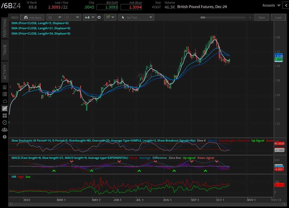 Iron Condor | Long 1.295 p Short 1.3 p Short 1.32 c Long 1.325 c | 26% | +225 | -87.50 |