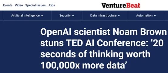 Early this morning, according to the well-known tech media Venturebeat, Noam Brown, a senior research scientist at OpenAI and the creator of Pluribus AI, presented a shocking theory at the TED AI conference in San Francisco. He proposed that the performance improvement brought by allowing AI models to think for 20 seconds is equivalent to scaling up the model by 100,000 times and training it for 100,000 times longer.
