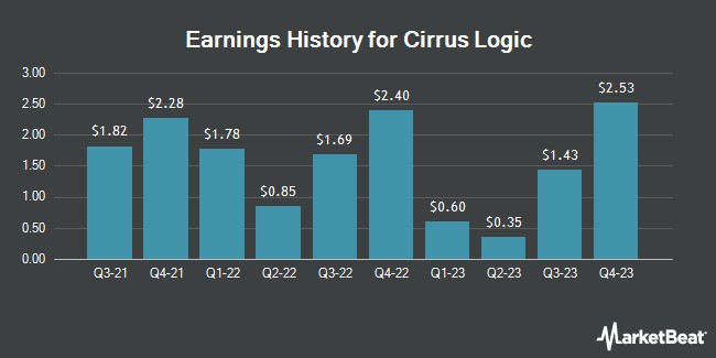Cirrus Logic (NASDAQ:CRUS - Get Free Report) last announced its earnings results on Tuesday, August 6th. The semiconductor company reported $1.12 EPS for the quarter, beating analysts' consensus estimates of $0.62 by $0.50. Cirrus Logic had a return on equity of 17.42% and a net margin of 16.31%. The firm had revenue of $374.03 million for the quarter, compared to analysts' expectations of $318.41 million. During the same quarter in the prior year, the firm earned $0.35 EPS. Cirrus Logic's quarterly revenue was up 18.0% on a year-over-year basis. On average, analysts expect Cirrus Logic to post $5 EPS for the current fiscal year and $6 EPS for the next fiscal year.