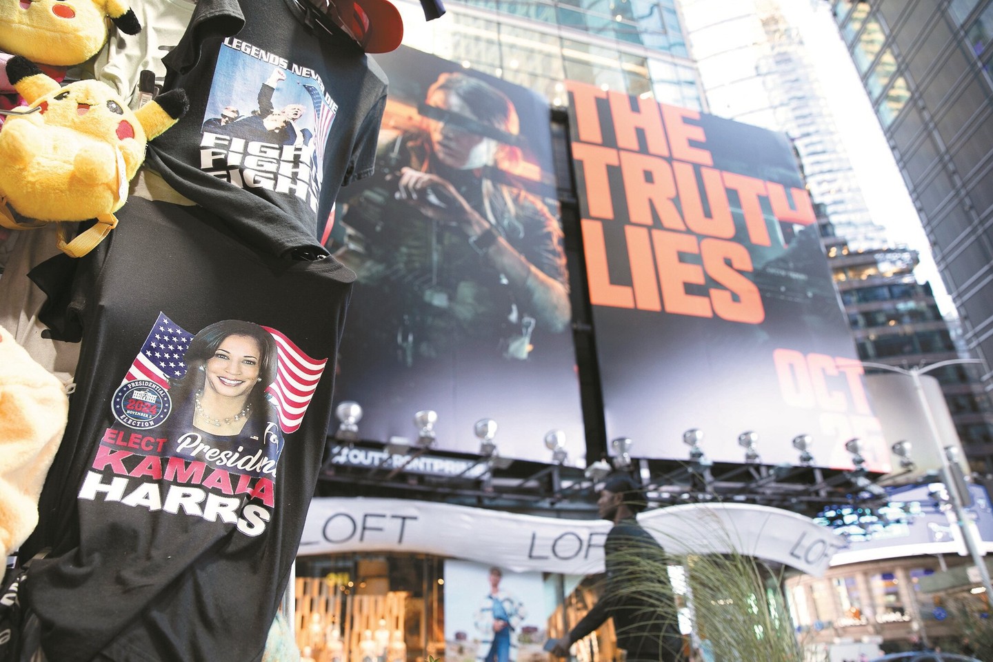 The results of the U.S. election and their impact on the global economy have drawn widespread attention. The picture shows election-related merchandise sold by souvenir vendors in Times Square, New York. (Photo by China News Service)