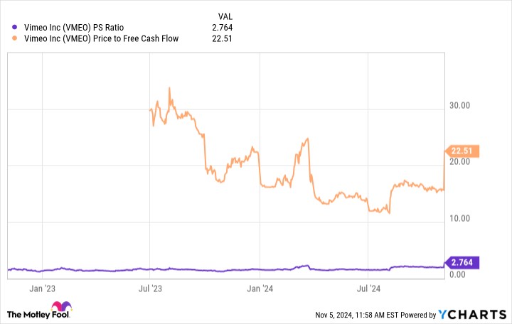 The other important bit of context here is that Vimeo stock was really cheap leading up to its Q3 report. It traded at just two times its sales and at about 16 times its free cash flow.