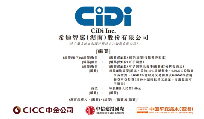 智通財經 APP 獲悉,據港交所 11 月 7 日披露,希迪智駕 (CiDi Inc.) 向港交所主板遞交上市申請,中金公司、中信建投國際、中國平安資本 (香港) 為其聯席保薦人。