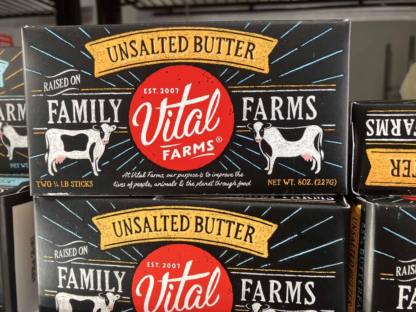 The butter from Vital Farms has a savory flavor and a high-fat content (85%). By law, U.S. butter must contain a minimum of 80% butterfat. Vital Farms butter is well above this minimum level.
