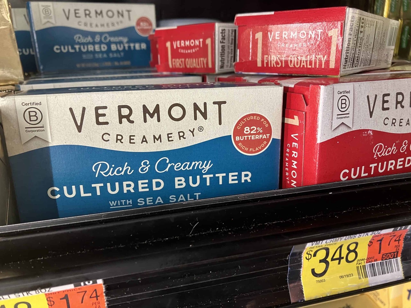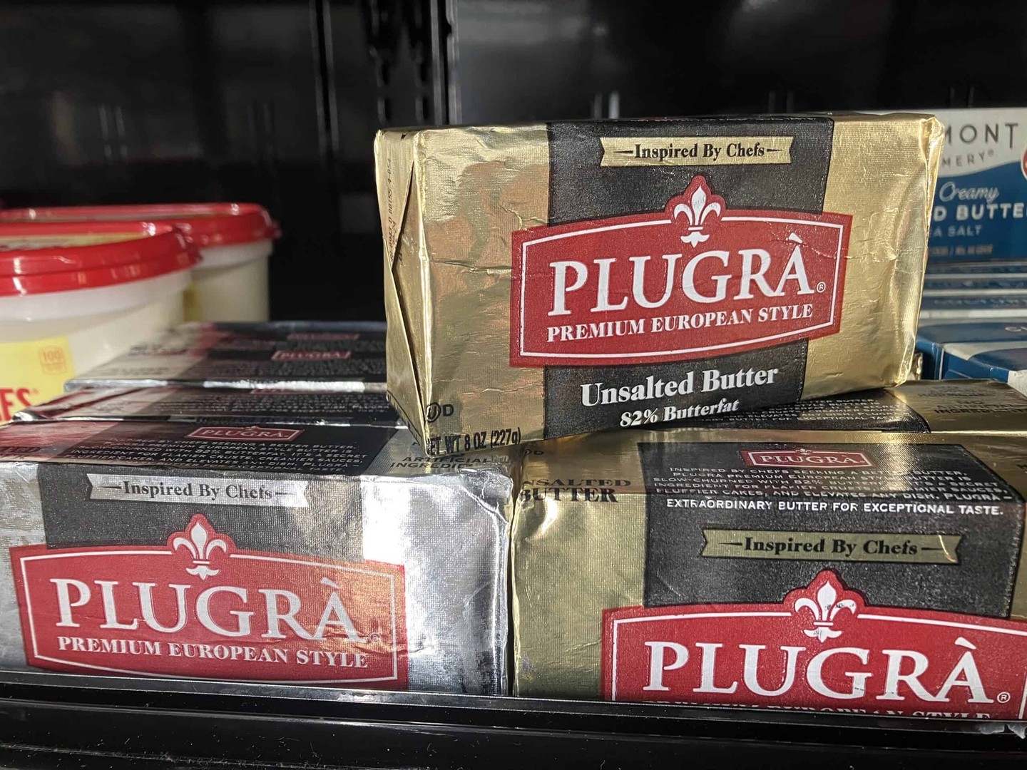 Vermont Creamery matches the butterfat content of Plugrà at 82%. The flavor leans more towards savory than sweet.