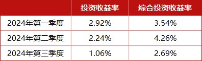 償付能力報告顯示,中英人壽單三季度投資收益率為 1.06%,低於第一季度的 2.92% 和第二季度的 2.24%。綜合投資收益率為 2.69%,低於第一季度的 3.54% 和第二季度的 4.26%。