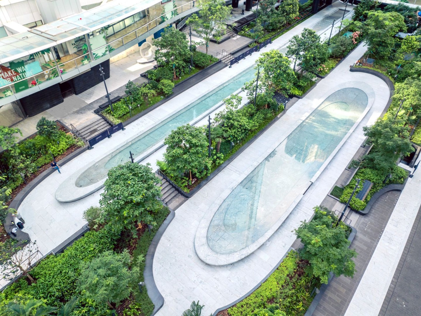 •綠色空間:太古中央廣場和太古花園提供共 70000 平方呎的翠綠園林、流水裝置和行人步道,由獲屢殊榮的園景設計公司 Gustafson Porter + Bowman 匠心打造。兩座花園種有超過 260 種本地及外來品種,有助提高太古坊的城市生物多樣性。
