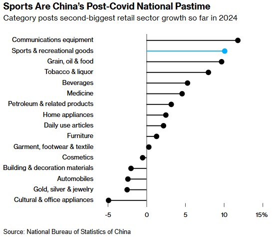 分析公司慕景 (Moojing) 數據顯示,天貓及淘寶上排名前 30 的户外運動品牌中,近一半產品平均價格在過去一年中有所上漲,而奢侈品和鞋類等零售行業卻遭遇了低迷。美國體育公司 (Amer Sports Inc.) 在中國黃金週假期期間大中華區收入增長超過 60%,主要受 Arc’teryx、滑雪靴品牌所羅門 (Salomon) 和網球拍製造商威爾遜 (Wilson) 等品牌銷售加速推動。這些品牌和 Lululemon 一樣,都被認為是中國中產階級的必備產品。費德勒 (Roger federer) 支持的運動鞋公司 On Holding AG 説,受中國和日本的推動,亞太地區第二季度收入增長了 74%。