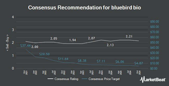 Several other research analysts also recently weighed in on BLUE. Barclays cut their target price on shares of bluebird bio from $4.00 to $2.00 and set an "overweight" rating for the company in a research note on Friday. Robert W. Baird cut their price objective on bluebird bio from $7.00 to $6.00 and set an "outperform" rating on the stock in a research report on Thursday, August 15th. Bank of America downgraded shares of bluebird bio from a "buy" rating to a "neutral" rating and decreased their target price for the company from $3.00 to $0.50 in a research note on Friday. Cantor Fitzgerald restated a "neutral" rating on shares of bluebird bio in a report on Monday, September 16th. Finally, JPMorgan Chase & Co. cut shares of bluebird bio from a "neutral" rating to an "underweight" rating in a research report on Friday. Three equities research analysts have rated the stock with a sell rating, seven have given a hold rating and two have issued a buy rating to the stock. According to MarketBeat, the stock currently has a consensus rating of "Hold" and an average price target of $3.03.