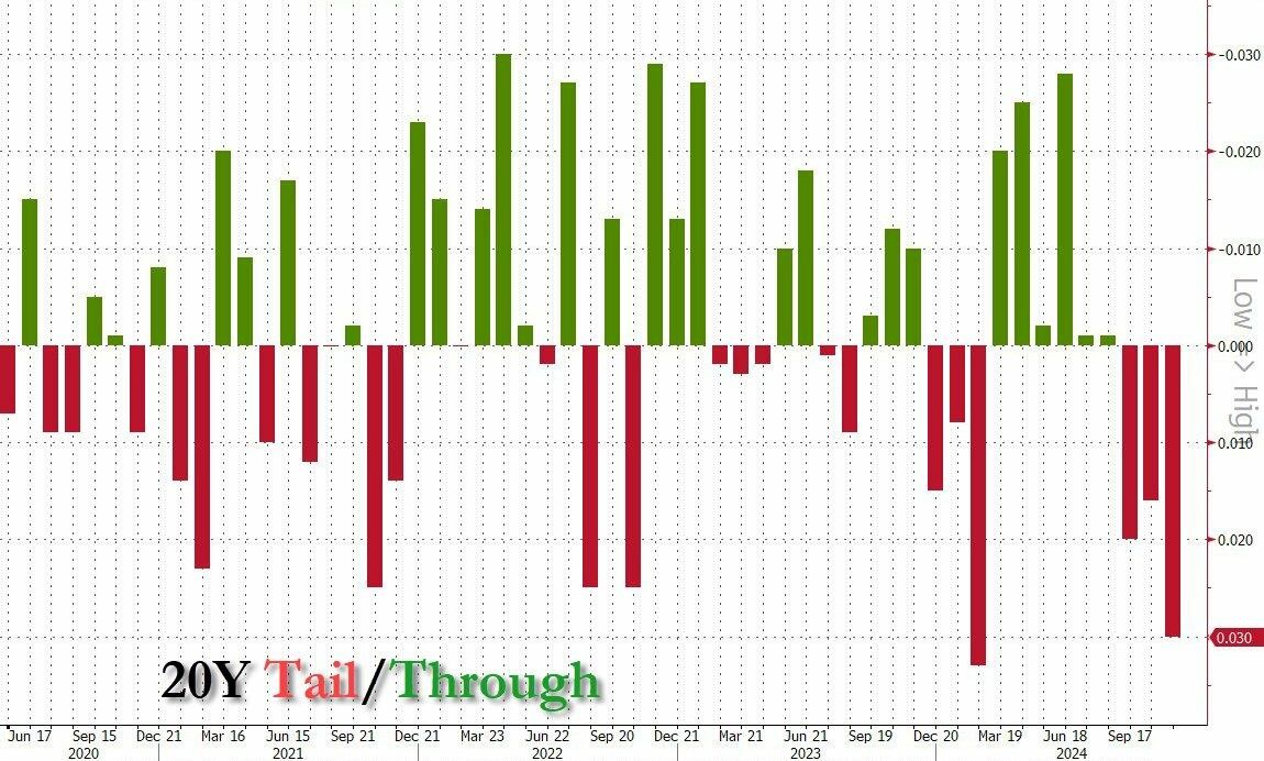 Given the poor auction results, the yield on 20-year U.S. Treasuries rose after the auction results were announced, with the 10-year Treasury yield increasing by 2 basis points to 4.41%, impacting risk assets as well.