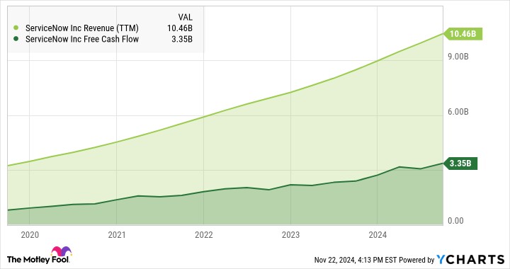 股票圖表可能很有趣,但財務報表更為重要。幸運的是,ServiceNow 經營着一家出色的公司。在過去五年中,其銷售額增長了三倍,而自由現金流則增長了四倍。
