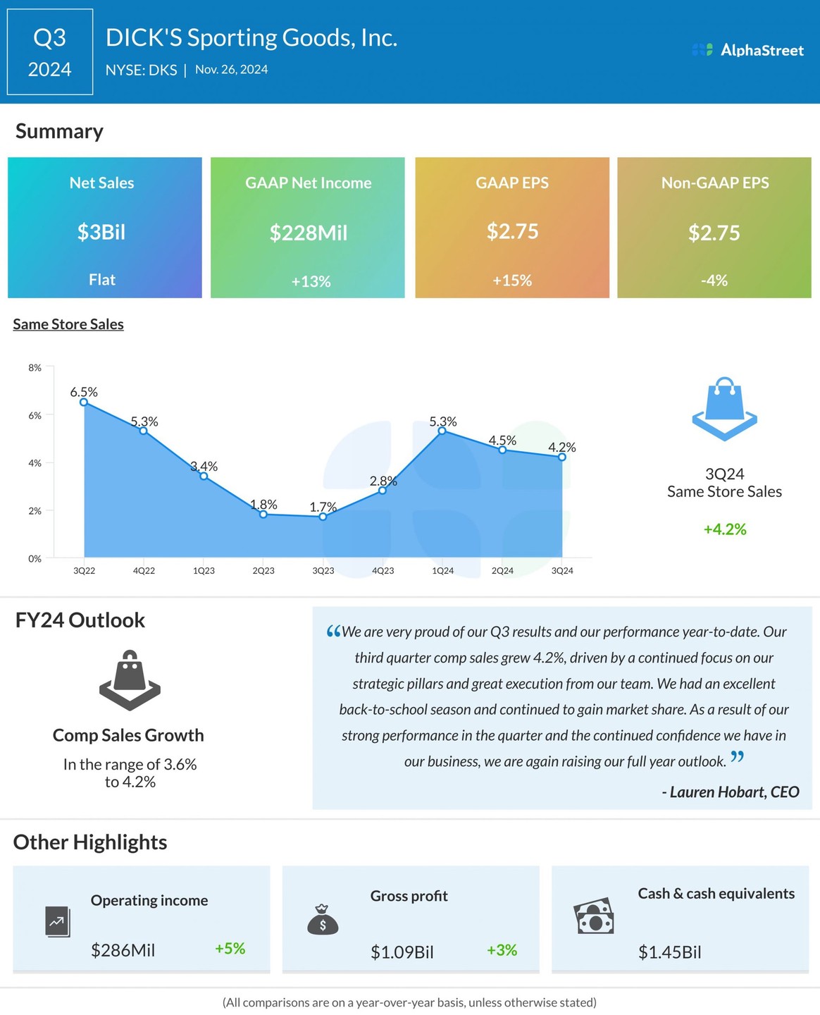 這篇信息圖表:迪克體育用品公司(DKS)在 2024 年第三季度的表現首次出現在 AlphaStreet 上。