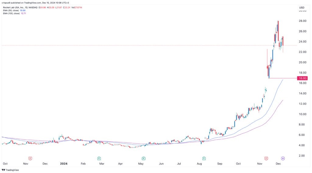 Rocket Lab stock price has suffered a harsh reversal recently, falling for two consecutive weeks. It has dropped by over 17% from its highest level this year, meaning that it has entered a technical correction.