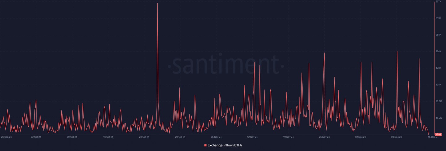 However, the spike in exchange inflows, up by 25%, raises concerns about potential profit-taking behavior.