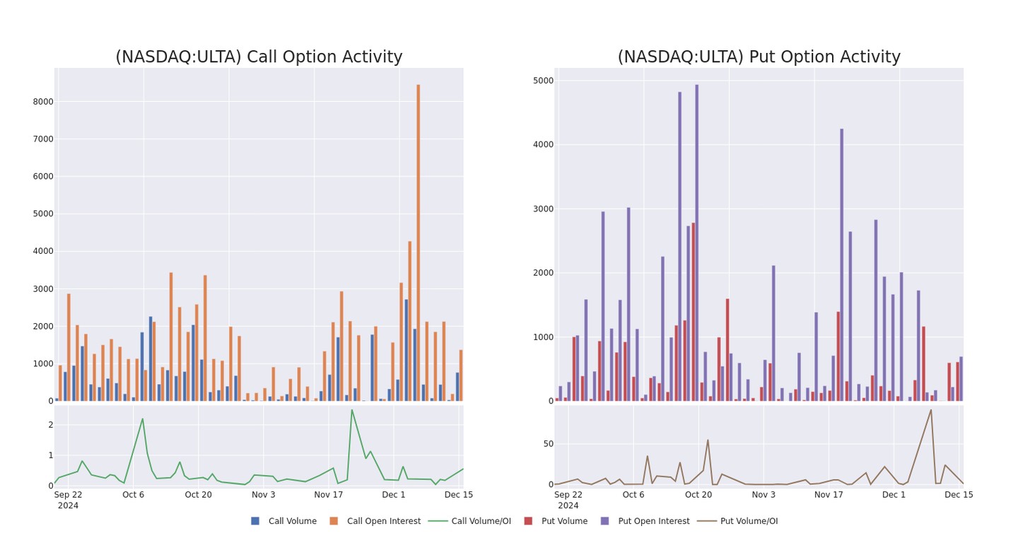 Ulta Beauty Option Volume And Open Interest Over Last 30 Days