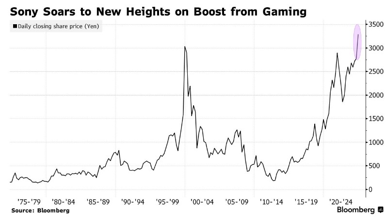 The gaming craze sweeps the globe, and 2025 may be the "greatest gaming year"! Sony's stock price embarks on a "long bull curve."