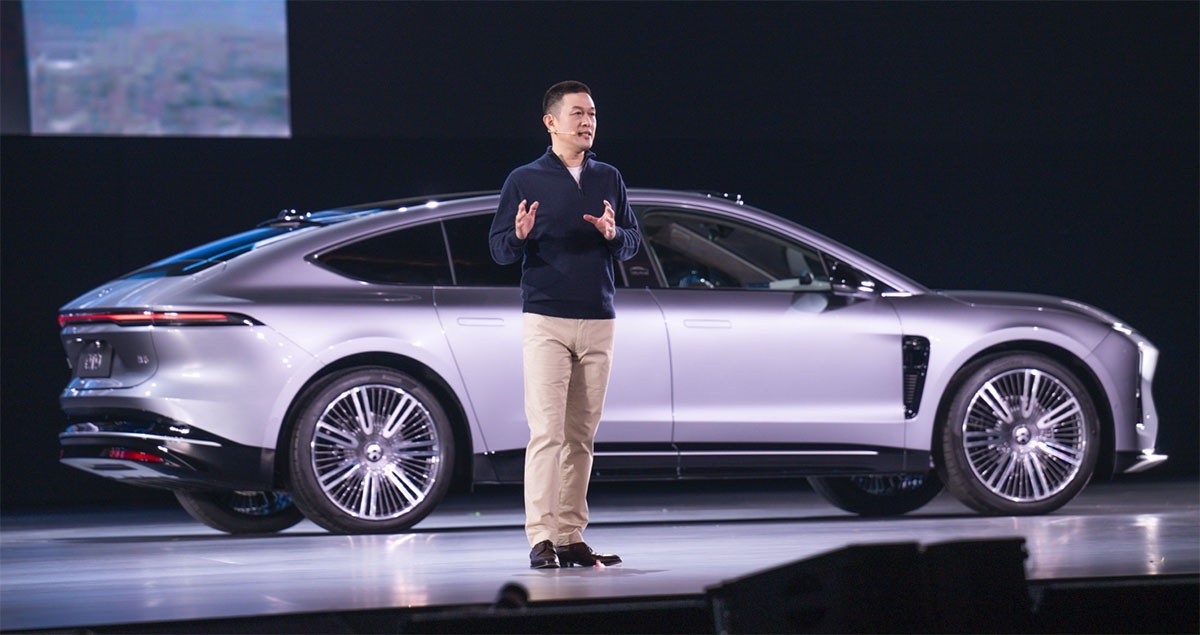 William Li, founder, chairman and CEO of Nio, presented a video at the launch event showing him driving an ET9 at 160 km/h and experiencing a tire blowout without losing control of the vehicle.