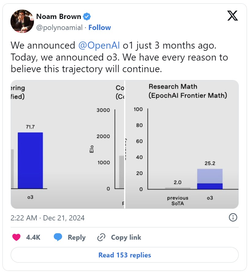 "This is big news because it suggests that AI's progress in 2025 should accelerate further compared to 2024."