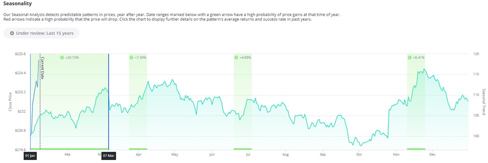 這為 Cheniere 的股票創造了相對可預測的季節性效應,自 2009 年以來,其股票在年初的前兩個月上漲了 20.7%。以下是來自交易週期的圖表: