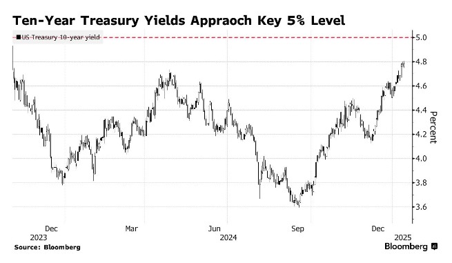 The next key data will be released on Wednesday, when the latest Consumer Price Index (CPI) will be announced, expected to show that inflation remains high. Since early December last year, U.S. Treasuries have been declining, pushing the 10-year Treasury yield up from around 4.15%, due to signs of resilience in the U.S. economy and speculation that Trump's economic agenda will stimulate faster growth. There are also concerns that his tariff plans could reignite inflation.