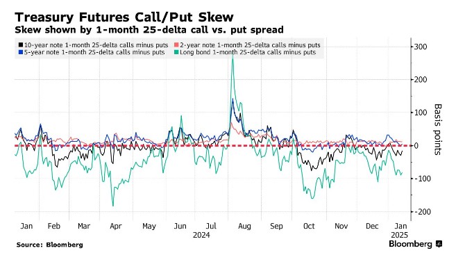 Some bond traders are starting to bet that the sell-off of U.S. Treasuries will slow down due to questions surrounding Trump's policies. Traders are increasing options bets, expecting yields to retreat from a 14-month high. The new Trump administration may gradually implement tariffs, weakening inflationary impacts and providing a temporary boost to Treasuries. Uncertainty about future policies is prompting investors to predict substantial returns, with bullish sentiment in the spot market strengthening and long positions rising to a more than one-year high