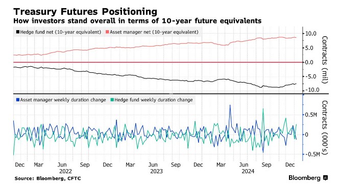 Data from the U.S. Commodity Futures Trading Commission (CFTC) as of January 7 shows that hedge funds have significantly covered short positions across the futures market, with a risk scale equivalent to approximately 263,000 10-year Treasury futures, marking the largest short covering since late November last year. On the other hand, asset management companies closed net long positions equivalent to about 125,000 10-year Treasury futures