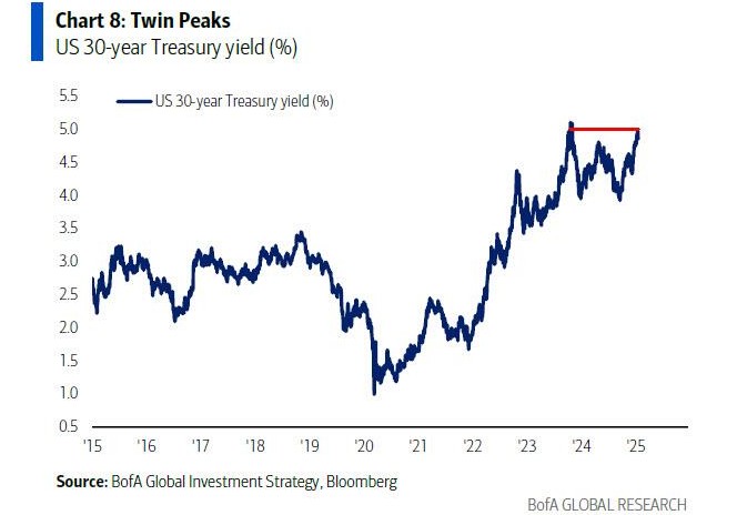 However, Hartnett believes that Trump's pursuit of a "small government" means that U.S. Treasury yields will reach a "double top," indicating that the 5% bond yield will not rise further.