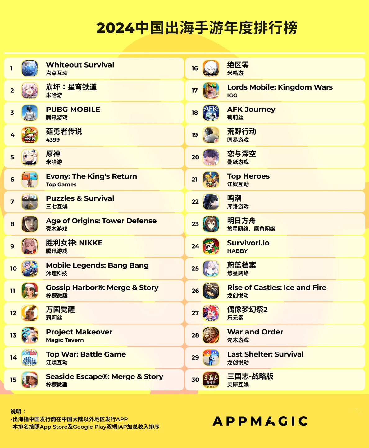 2024 Annual Ranking of Chinese Mobile Games Going Abroad