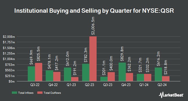 Several other institutional investors and hedge funds have also modified their holdings of QSR. Geode Capital Management LLC lifted its holdings in Restaurant Brands International by 10.1% in the 3rd quarter. Geode Capital Management LLC now owns 1,379,847 shares of the restaurant operator's stock worth $101,085,000 after purchasing an additional 126,600 shares during the last quarter. Avanza Fonder AB acquired a new stake in shares of Restaurant Brands International in the fourth quarter worth $1,299,000. Dimensional Fund Advisors LP lifted its stake in shares of Restaurant Brands International by 1.7% in the second quarter. Dimensional Fund Advisors LP now owns 650,486 shares of the restaurant operator's stock worth $45,772,000 after buying an additional 10,855 shares during the last quarter. Wellington Management Group LLP boosted its holdings in shares of Restaurant Brands International by 112.1% during the 3rd quarter. Wellington Management Group LLP now owns 17,965 shares of the restaurant operator's stock worth $1,298,000 after buying an additional 9,496 shares during the period. Finally, Private Advisor Group LLC acquired a new position in Restaurant Brands International in the 3rd quarter valued at $257,000. Institutional investors and hedge funds own 82.29% of the company's stock.