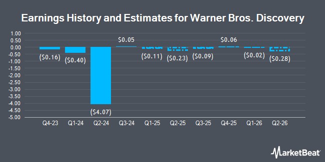 Warner Bros. Discovery (NASDAQ:WBD - Get Free Report) last posted its quarterly earnings results on Thursday, November 7th. The company reported $0.05 earnings per share for the quarter, beating analysts' consensus estimates of ($0.07) by $0.12. Warner Bros. Discovery had a negative return on equity of 27.56% and a negative net margin of 28.34%. The company had revenue of $9.62 billion for the quarter, compared to the consensus estimate of $9.79 billion. During the same quarter in the prior year, the business posted ($0.17) EPS. The firm's quarterly revenue was down 3.6% on a year-over-year basis.