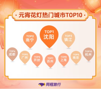 According to the Zhitong Finance APP, the Lantern Festival in 2025 is approaching, and traditional cultural feasts centered around intangible cultural heritage lantern displays are being held across the country. On February 10th, TONGCHENGTRAVEL (00780) released the "2025 Lantern Festival Intangible Cultural Heritage Lantern Viewing Map," showcasing unique cultural charm of intangible heritage lanterns lighting up the Lantern Festival night from the ice city in the north to the flower city in the south, and from ancient cities in the west to coastal areas in the east. Data from TONGCHENGTRAVEL shows that the top 10 popular cities for lantern displays this year are: Shenyang ranked first, followed by Nanning and Zhenjiang, with Chengdu, Guangzhou, Kaifeng, Suzhou, Shanghai, Nanjing, and Hangzhou following closely.