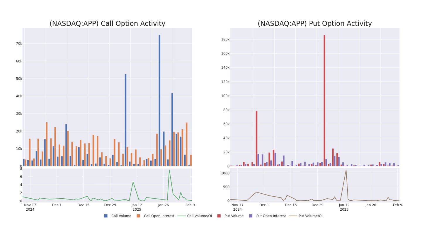 AppLovin Option Volume And Open Interest Over Last 30 Days