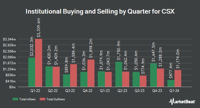 A number of other hedge funds and other institutional investors have also made changes to their positions in CSX. Valley Wealth Managers Inc. raised its holdings in shares of CSX by 177.8% in the 3rd quarter. Valley Wealth Managers Inc. now owns 750 shares of the transportation company's stock worth $26,000 after purchasing an additional 480 shares in the last quarter. Morton Brown Family Wealth LLC bought a new stake in shares of CSX in the 3rd quarter worth approximately $31,000. Center for Financial Planning Inc. raised its holdings in shares of CSX by 205.7% in the 4th quarter. Center for Financial Planning Inc. now owns 1,070 shares of the transportation company's stock worth $35,000 after purchasing an additional 720 shares in the last quarter. Addison Advisors LLC increased its position in shares of CSX by 348.5% in the third quarter. Addison Advisors LLC now owns 1,045 shares of the transportation company's stock worth $36,000 after acquiring an additional 812 shares in the last quarter. Finally, Fortitude Family Office LLC increased its position in shares of CSX by 43.4% in the third quarter. Fortitude Family Office LLC now owns 1,110 shares of the transportation company's stock worth $38,000 after acquiring an additional 336 shares in the last quarter. 73.57% of the stock is currently owned by institutional investors.