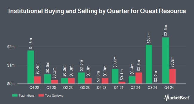 其他几家机构投资者和对冲基金最近也对该公司的持仓进行了调整。BNP Paribas Financial Markets 在第三季度将其在 Quest Resource 的持仓增加了 62.0%。BNP Paribas Financial Markets 目前持有 10,063 股该商业服务提供商的股票,价值 80,000 美元,此前在上个季度购买了额外的 3,850 股。MetLife Investment Management LLC 在第三季度将其在 Quest Resource 的股份增加了 129.1%。MetLife Investment Management LLC 目前持有 10,285 股该商业服务提供商的股票,价值 82,000 美元,此前在上个季度购买了额外的 5,795 股。Jane Street Group LLC 在第三季度购买了 Quest Resource 的新股份,价值约为 116,000 美元。GSA Capital Partners LLP 在第三季度购买了 Quest Resource 的新股份,价值约为 148,000 美元。最后,Avanza Fonder AB 在第四季度购买了价值 150,000 美元的 Quest Resource 新股份。对冲基金和其他机构投资者持有该公司 48.16% 的股份。