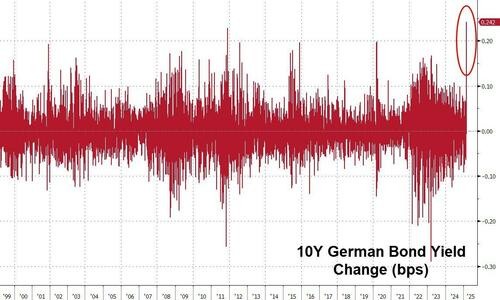The "historic" fiscal expansion plan stimulates, causing German bond yields to soar, marking the largest increase since June 2022