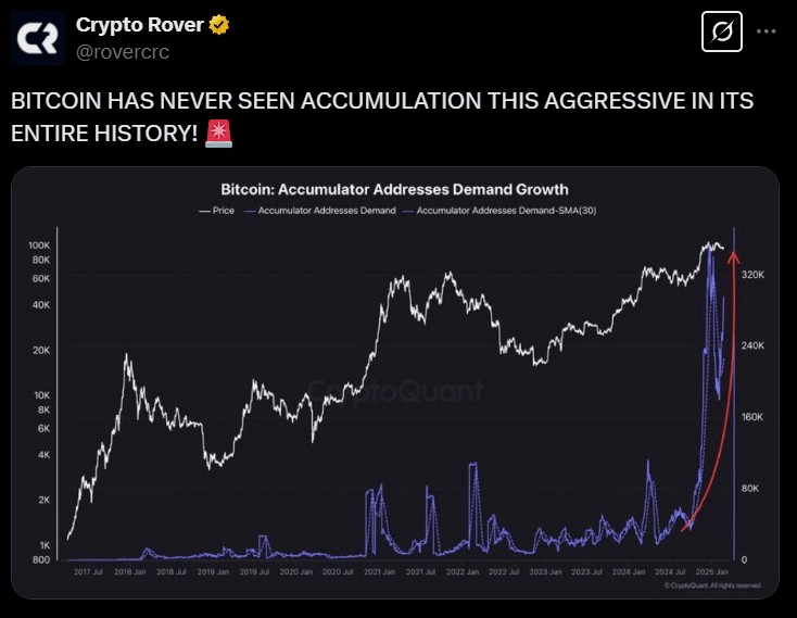 Large Bitcoin holders and retail investors have been accumulating at an aggressive pace lately, signaling strong market confidence.
