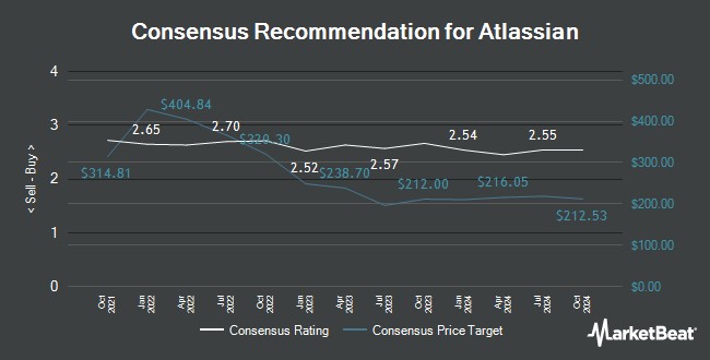 其他幾家券商也對 TEAM 發佈了報告。JMP Securities 在 1 月 31 日的報告中重申了對 Atlassian 股票的 “市場表現” 評級。瑞銀集團將 Atlassian 的目標價從 275.00 美元上調至 330.00 美元,並在 1 月 31 日的研究報告中給予該股票 “中性” 評級。花旗集團將 Atlassian 的目標價從 255.00 美元上調至 300.00 美元,並在 1 月 17 日的研究報告中給予該股票 “買入” 評級。加拿大皇家銀行將 Atlassian 的目標價從 250.00 美元上調至 330.00 美元,並在 1 月 31 日的研究報告中給予該股票 “行業表現” 評級。最後,Cantor Fitzgerald 將 Atlassian 的目標價從 264.00 美元上調至 304.00 美元,並在 1 月 31 日的報告中給予該公司 “中性” 評級。八位研究分析師對該股票給予了持有評級,十七位分析師則給予了買入評級。根據 MarketBeat 的數據,該公司的平均評級為 “適度買入”,平均目標價為 319.71 美元。
