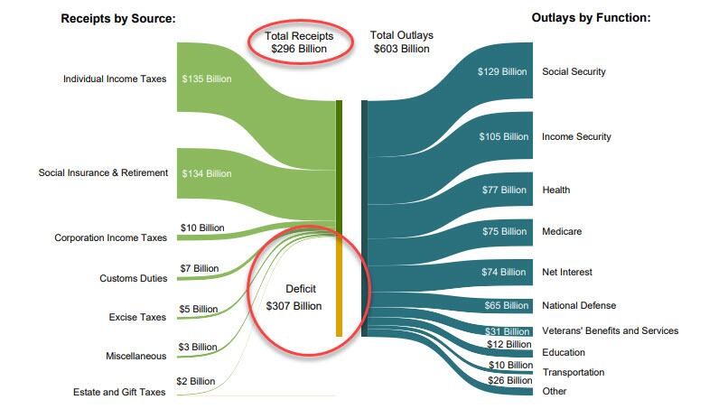 U.S. Department of the Treasury: In the first five months of this fiscal year, the budget deficit reached $1.15 trillion, setting a historical high for the same period