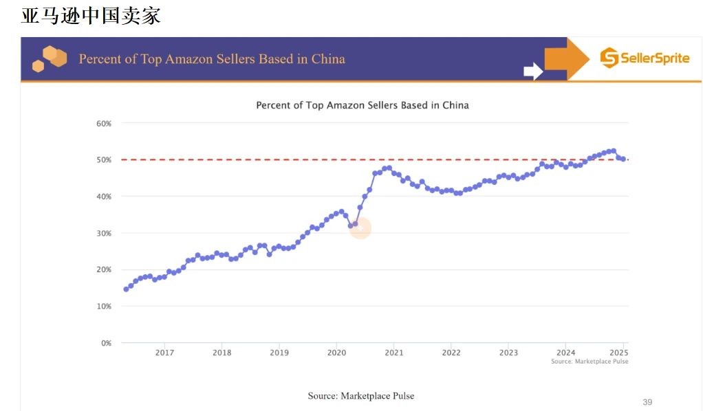 According to SellerSprite data, in 2024, Chinese sellers accounted for over 50% of the market share on Amazon, while the market share of U.S. sellers has dropped to around 45%. Over the past decade, the market share of Chinese sellers has steadily increased.