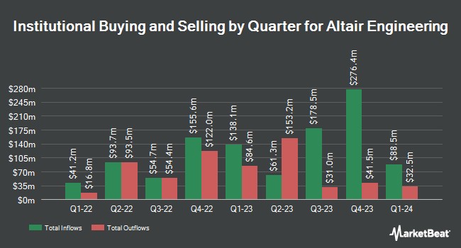 Other hedge funds also recently made changes to their positions in the company. NBT Bank N A NY raised its holdings in shares of Altair Engineering by 76.4% during the fourth quarter. NBT Bank N A NY now owns 247 shares of the software's stock valued at $27,000 after buying an additional 107 shares during the last quarter. UMB Bank n.a. boosted its stake in Altair Engineering by 77.0% during the 4th quarter. UMB Bank n.a. now owns 285 shares of the software's stock valued at $31,000 after purchasing an additional 124 shares in the last quarter. GAMMA Investing LLC increased its position in shares of Altair Engineering by 14.6% during the 4th quarter. GAMMA Investing LLC now owns 729 shares of the software's stock valued at $80,000 after purchasing an additional 93 shares during the period. Blue Trust Inc. raised its stake in shares of Altair Engineering by 185.5% in the 4th quarter. Blue Trust Inc. now owns 825 shares of the software's stock worth $90,000 after buying an additional 536 shares in the last quarter. Finally, KBC Group NV lifted its holdings in shares of Altair Engineering by 17.9% in the third quarter. KBC Group NV now owns 1,640 shares of the software's stock valued at $157,000 after buying an additional 249 shares during the period. Institutional investors own 63.38% of the company's stock.
