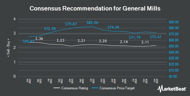 通用磨坊 (NYSE:GIS - 獲取免費報告) 在週四向客户和投資者發佈的研究報告中,Mizuho 的股票研究分析師將其目標價格從 62.00 美元下調至 60.00 美元。該券商目前對該股票持 “中性” 評級。Mizuho 的目標價格意味着與公司之前收盤價相比,潛在上漲幅度為 2.49%。
