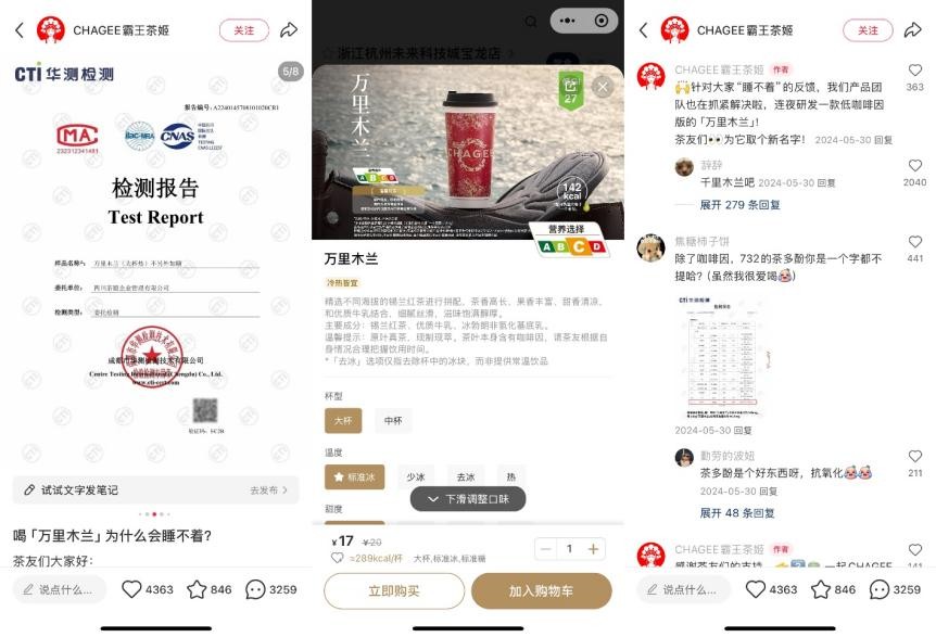 霸王茶姬 (Bawang Chaji) is taking advice, as a netizen's comment "I can't sleep" led to an immediate change in their formula.