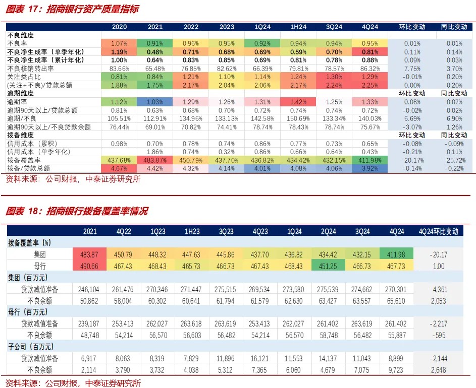 Non-Performing Dimension - Non-Performing Loans Remain Low. 1. The non-performing loan ratio at the end of 2024 is 0.95%, an increase of 1bp compared to the third quarter, basically stable, maintaining an excellent level. 2. The annualized net non-performing loan generation for the quarter is 0.81%, an increase of 11bp quarter-on-quarter.