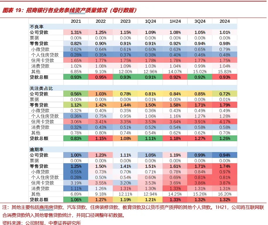 Asset Quality Situation of Each Business Line: Corporate Sector Shows Improvement in Attention, Overdue, and Non-Performing Loans; Retail Asset Quality Slightly Under Pressure, but Non-Performing Loan Generation Stabilizes, Credit Card Non-Performing Loan Ratio Declines for Two Consecutive Quarters.