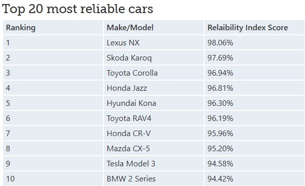 Within the model-specific findings, the Tesla Model 3 stood out as one of the most reliable vehicles in the UK market, achieving a reliability score of 94.58%, placing it ninth among the top 20 most reliable cars. This makes it one of only two electric vehicles to crack the reliability top 10.