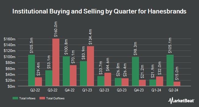 其他幾家對沖基金也買賣了 HBI 的股票。Hennessy Advisors Inc.在第四季度購買了價值約 6,219,900 美元的 Hanesbrands 新頭寸。摩根大通在第三季度將其在 Hanesbrands 的持倉增加了 484.0%。摩根大通目前持有 2,143,791 股該紡織製造商的股票,價值 1,575,700 美元,此前在上個季度又購買了 1,776,690 股。Verition Fund Management LLC 在第三季度購買了價值 724.9 萬美元的 Hanesbrands 新頭寸。Raymond James Financial Inc.在第四季度購買了價值 539.5 萬美元的 Hanesbrands 新股份。最後,法國巴黎銀行金融市場在第三季度將其在 Hanesbrands 的股份增加了 388.9%。法國巴黎銀行金融市場目前持有 742,314 股該紡織製造商的股票,價值 545.6 萬美元,此前在上個季度又收購了 590,493 股。機構投資者持有該公司 80.31% 的股票。