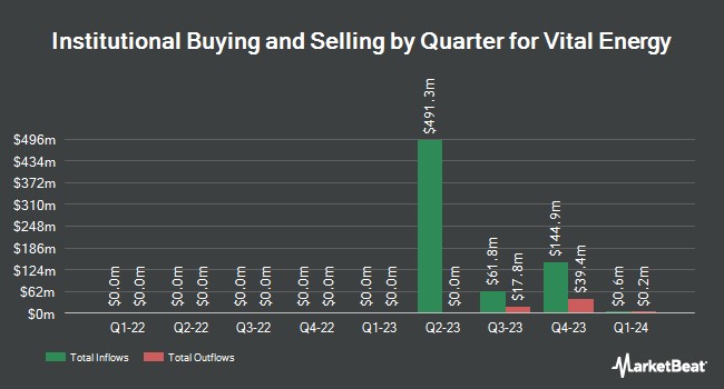 Several other large investors have also recently added to or reduced their stakes in the stock. State Street Corp grew its stake in shares of Vital Energy by 14.4% in the third quarter. State Street Corp now owns 1,755,173 shares of the company's stock valued at $47,214,000 after buying an additional 220,871 shares in the last quarter. Barclays PLC grew its position in Vital Energy by 124.0% in the third quarter. Barclays PLC now owns 338,675 shares of the company's stock valued at $9,110,000 after acquiring an additional 187,503 shares in the last quarter. Tributary Capital Management LLC raised its stake in shares of Vital Energy by 45.0% during the fourth quarter. Tributary Capital Management LLC now owns 428,295 shares of the company's stock valued at $13,243,000 after purchasing an additional 132,924 shares during the period. Raymond James Financial Inc. acquired a new position in shares of Vital Energy during the fourth quarter worth $4,022,000. Finally, Charles Schwab Investment Management Inc. boosted its stake in shares of Vital Energy by 25.8% in the fourth quarter. Charles Schwab Investment Management Inc. now owns 504,885 shares of the company's stock valued at $15,611,000 after purchasing an additional 103,583 shares during the period. 86.54% of the stock is currently owned by institutional investors and hedge funds.